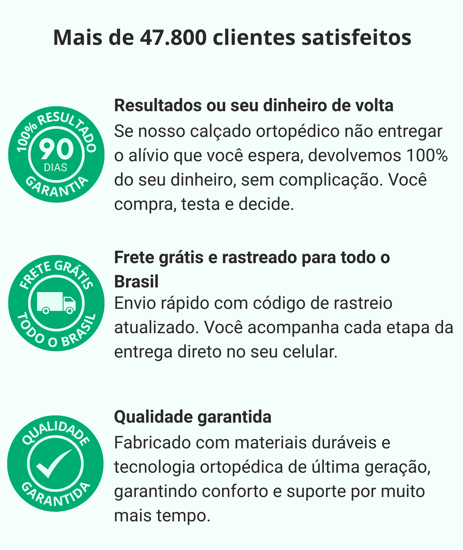 Se após testar você não sentir melhora nas dores e no conforto, basta acionar nossa Garantia de 90 Dias.