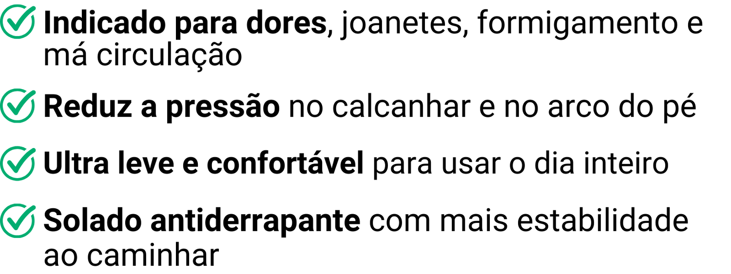 Se não perceber melhora no conforto e nas dores, você pode acionar nossa garantia e receber reembolso total, sem burocracia.
